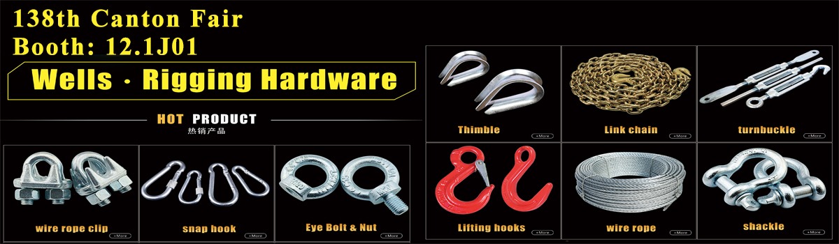 Productos principales:Cadena de eslabones, cuerda de alambre, grillete, tensor, clip de cuerda de alambre